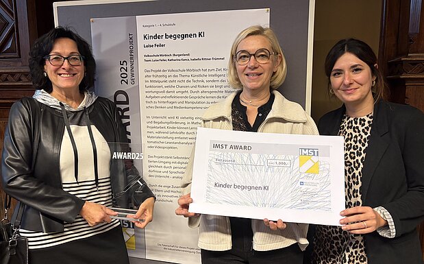 Die Volksschule Mörbisch wurde mit dem IMST-Award für innovative Entwicklungen ausgezeichnet. Das ausgezeichnete Projekt „Kinder begegnen KI“ hat zum Ziel, Kinder im Volksschulalter frühzeitig an das Thema künstliche Intelligenz (KI) heranzuführen. Im Mittelpunkt steht nicht das Verständnis, wie KI funktioniert, welche Chancen und Risiken sie birgt und wie man verantwortungsvoll damit umgeht. Durch altersgerechte Materialien, kreative Aufgaben und reflektierende Gespräche lernen die Kinder, KI-Systeme kritisch zu hinterfragen und Manipulation zu erkennen. Datenschutz, kritisches Denken und Medienkompetenz sind zentrale Lernziele.